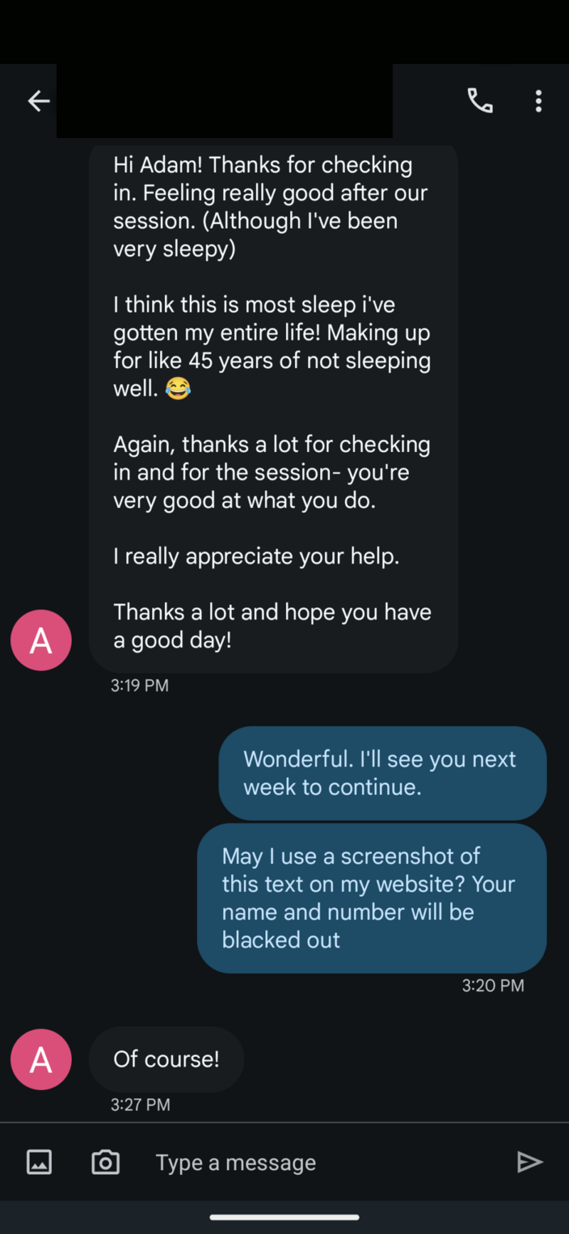 “I quit my therapist after working with Adam for a month. Once you have the right tools, there just was no point in talking about it over and over again.” -Laura D.
