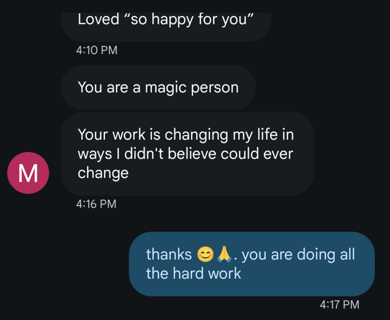 The Dreamwalking framework is a hybrid program consisting of 8 individual sessions and unlimited group healing sessions. Most clients achieve their desired results within four months, with six months allowed for full completion. It allows you to heal your subconscious mind for a one-time investment of a few thousand dollars—rather than spending years and tens of thousands with repeat practitioners.